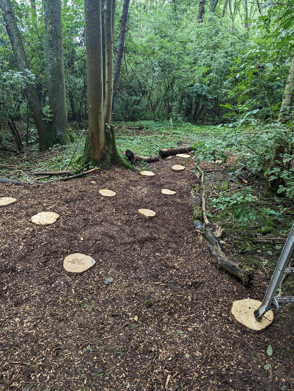 - Woodland pathway with stepping stones